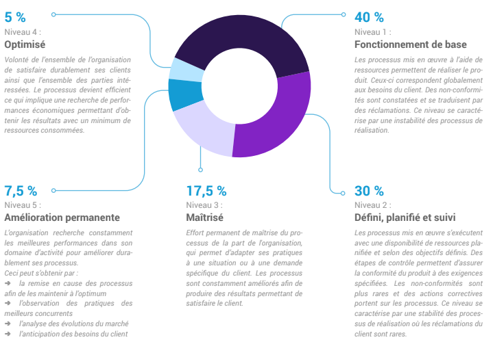 On s’est donc aperçu que la démarche Qualité dans le secteur public occupe une place reconnue, mais encore perfectible. Si elle est perçue comme un véritable levier de progrès et bénéficie d’une forte implication de la Direction, son niveau de maturité reste globalement assez faible.