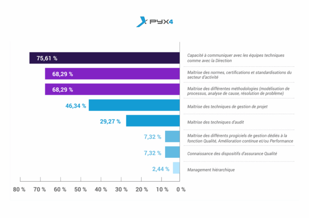 En matière de compétences requises pour les fonctions Qualité dans le public, les tendances sont globalement similaires à celles du secteur privé :